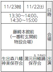日時:11月28日(金)午前11時~11時45分、午後1時半~2時15分