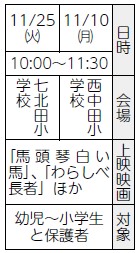 託児あり(6カ月~小学1年生。こども1人300円。(1)11月20日(2)12月4日までに要申し込み)