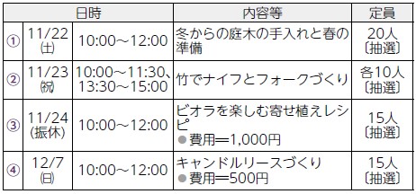 申込み:水の森公園キャンプ場ホームページで11月11日までに