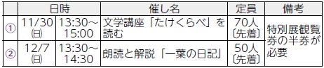 申込み:(1)11月7日(2)11月11日10:00から電話で