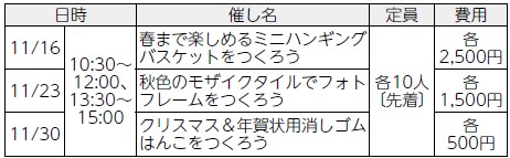申込み:11月14日9:00から電話または直接施設へ