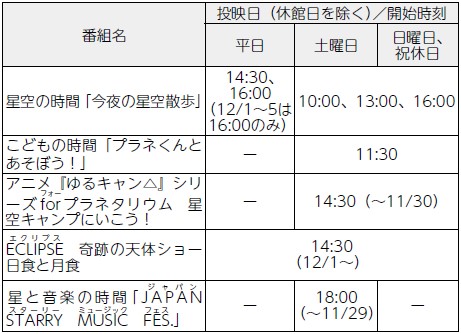 ◇プラネタリウム(投映時間は各回約45分)