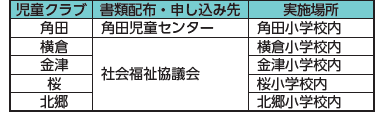 ・角田児童クラブ分…角田児童センター(【電話】62-4360)