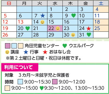 予約・問い合わせ:子育て支援センターまめっこ(角田児童センター内)