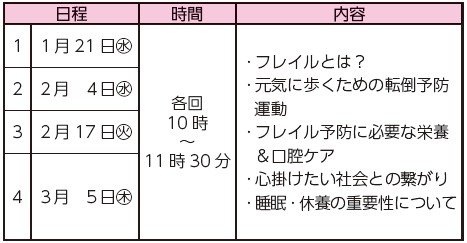 申し込み:1月14日(水)までに健康長寿課保健予防係(市役所西庁舎6階)へ電話か直接