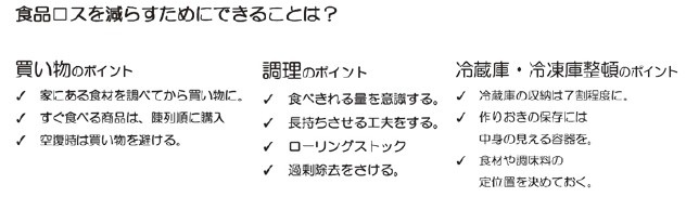 食品ロスを減らすためには、必要な量だけ購入し、おいしく「食べきる」ことが大切です。日常生活でできる範囲から実践しましょう!