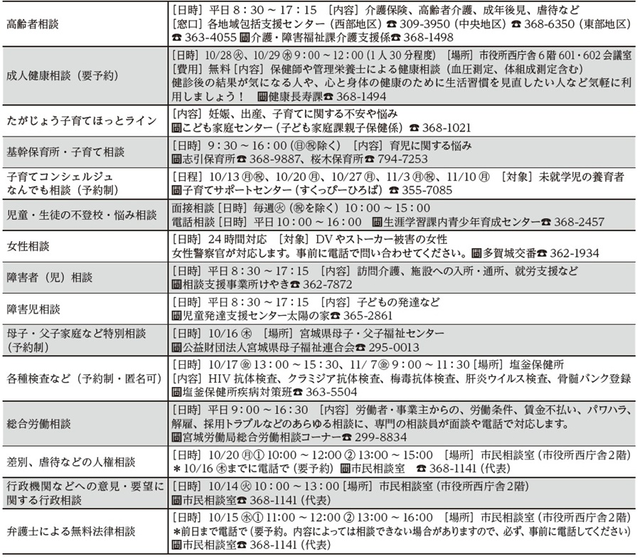 相談方法など詳しくは、各窓口に問い合わせてください。