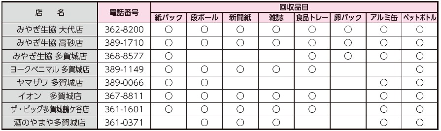 ・ごみを分別して捨てる(下記の店舗では資源物の店頭回収を行っています)