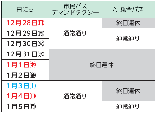 ■年末年始の市民バス、デマンドタクシー、AI乗合バスの運行
