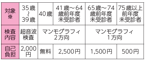 ※マンモグラフィ検査による検診は2年に1回とされているため、41歳以上の方は「令和6年度に受診していない方」が対象です。