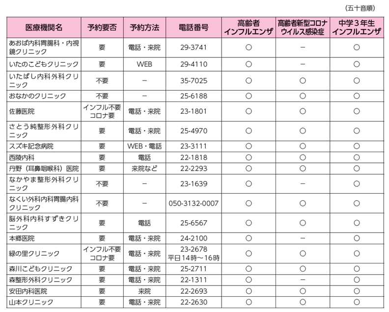 ▽委託医療機関(予約が必要な場合があります。事前にご確認ください)