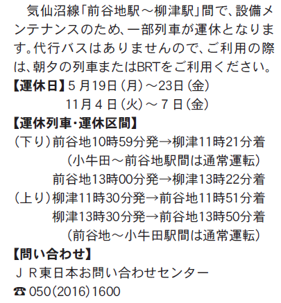 くらし JR東日本列車運休のお知らせ 27/37 前の記事 次の記事 発行日 : 2025年04月16日 自治体名 : 宮城県登米市 広報紙名 : 広報とめ 5月号(360号) Tweet シェアする 水の里ホール・Abebisou(登米祝祭劇場) 5月のイベント情報 情報広場 Information~相談~
