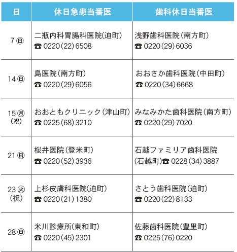 問合せ:石巻市夜間急患センター(石巻赤十字病院敷地内)