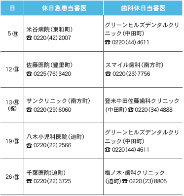 問合せ:石巻市夜間急患センター(石巻赤十字病院敷地内)