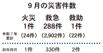 くらし 9月の災害件数 41/44 前の記事 次の記事 発行日 : 2025年10月20日 自治体名 : 宮城県登米市 広報紙名 : 広報とめ 11月号(366号) 11月9日から15日は、秋の全国火災予防運動が実施されます。火災が起こりやすい時期です。命と財産を守るため、日頃から火災予防に努めましょう。 Tweet シェアする 市内の交通事故発生状況 ときめき人~Tome bito~
