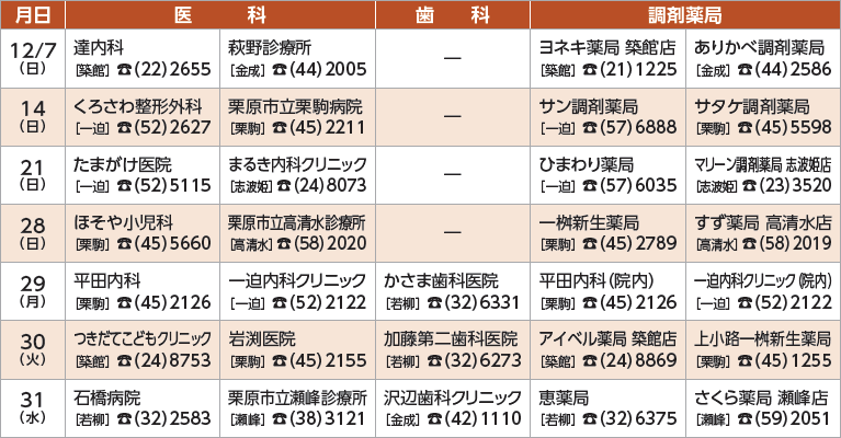 ■休日急患診療当番医・調剤薬局