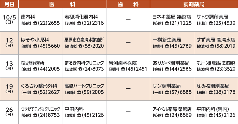 ※休日当番医は、変更になる場合があります。最新の情報は市ウェブサイトで確認してください。