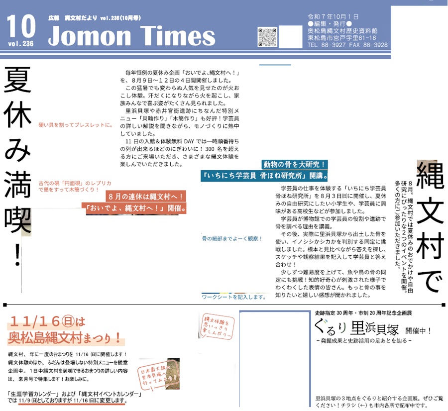 文化 広報 縄文村だより vol.236(10月号) Jomon Times 37/62 前の記事 次の記事 発行日 : 2025年10月01日 自治体名 : 宮城県東松島市 広報紙名 : 市報ひがしまつしま 2025年10月1日号 Tweet シェアする 図書館だよりVOL.244 みりょく発見!ひがしまつしまの観光と物産