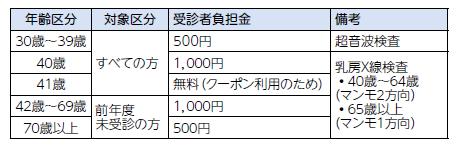 40・45・50・55・60・65・70歳の女性…受診者負担金1,000円