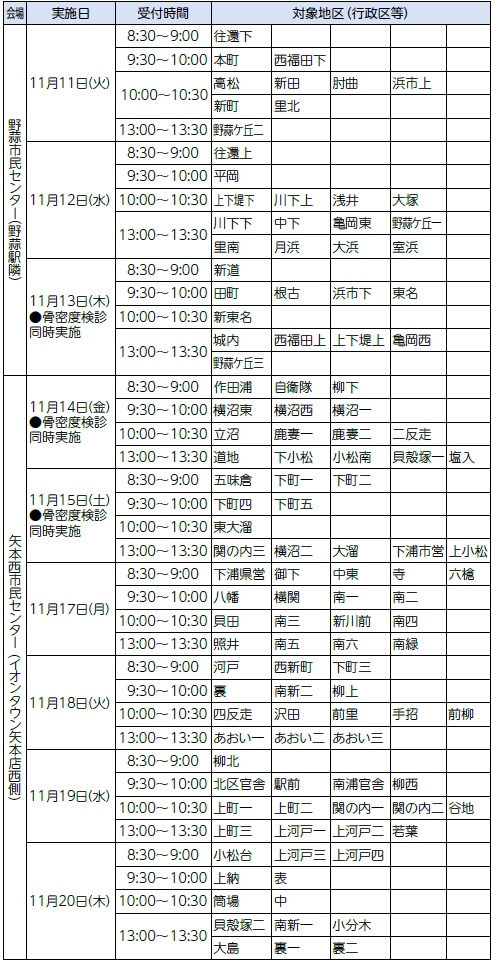都合の悪い場合は、都合が良い会場や日時で受診してください。