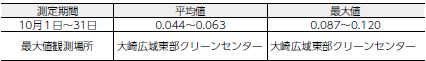 環境省が市内および大崎地域広域行政事務組合に設置したモニタリングポスト14カ所それぞれの空間線量の平均値および最大値については、次の範囲でした。