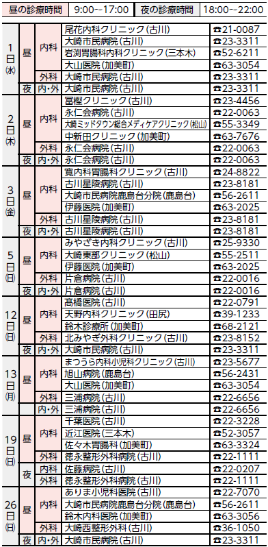 ■ 1月の休日救急当番医 大崎市医師会・加美郡医師会