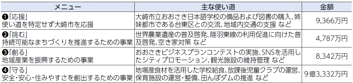 令和6年度は、全国から約3万3,000件、総額6億円を超える寄付がありました。寄付金は、指定された使い道に沿って、市のさらなる発展のために有効活用しています。今後も、ふるさと納税を活用しながら、より良いまちづくりを進めていきます。
