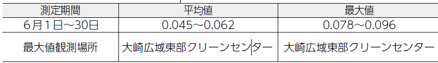 環境省が市内および大崎地域広域行政事務組合に設置したモニタリングポスト14カ所それぞれの空間線量の平均値および最大値については、次の範囲でした。