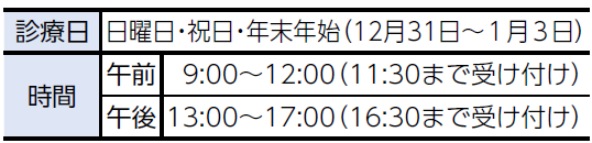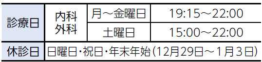 ※診療時間内でも、時間帯によって受け付けできないことがあります。来院前に電話で相談してください。