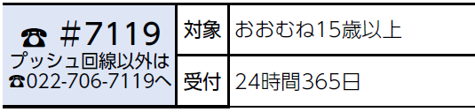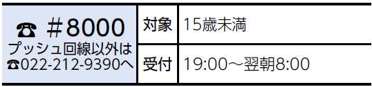 休日救急当番医や夜間急患センターが終了した22時以降は、夜間電話相談窓口に電話してください。