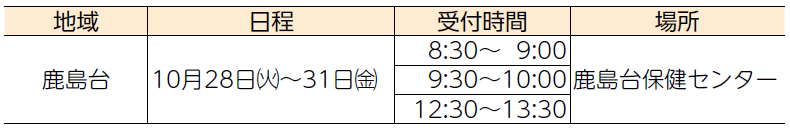 受診機会を逃した人を対象に、以下の日程で追加健診を実施します。なお、特定健康診査・健康診査、骨粗しょう症検診、肝炎ウイルス検診、前立腺がん検診、歯周病チェックは追加検診では実施しません。