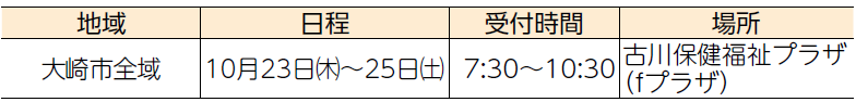 ※市外の医療機関で接種を希望する場合は、事前に健康推進課または各総合支所市民福祉課に連絡してください。