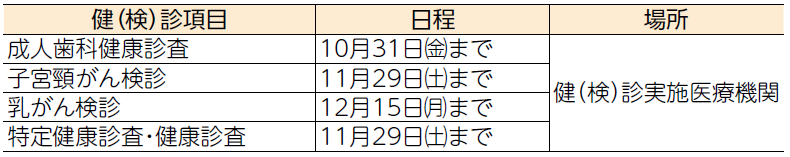 集団検診で特定健康診査・健康診査の受診機会を逃した人は、以下の日程で受診してください。