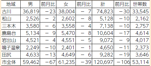 ■9月1日現在の大崎市の人口(単位:人・世帯)