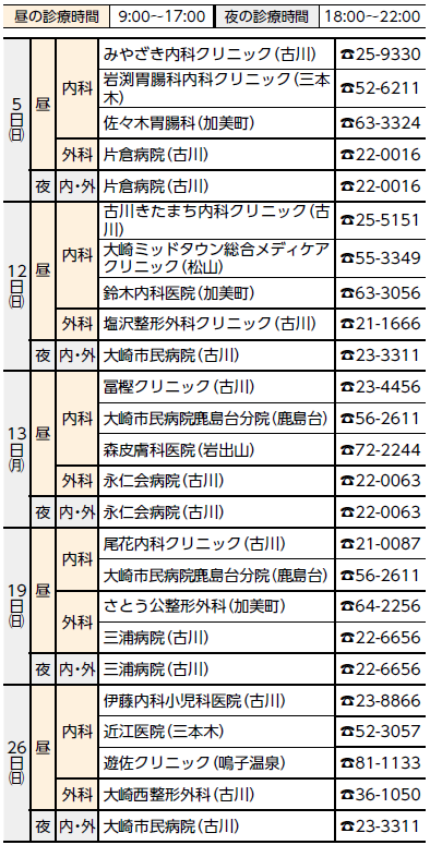 10月の休日救急当番医 大崎市医師会・加美郡医師会