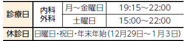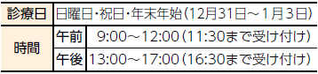 ※診療時間内でも、時間帯によって受け付けできないことがあります。来院前に電話で相談してください。