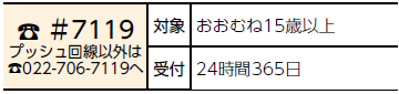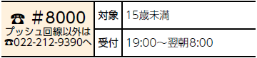 休日救急当番医や夜間急患センターが終了した22時以降は、夜間電話相談窓口に電話してください。