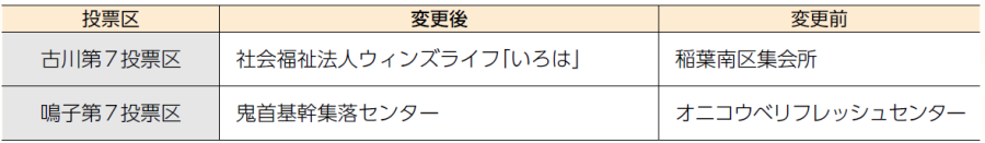 以下のとおり投票区の投票所が変更となりますので、注意してください。