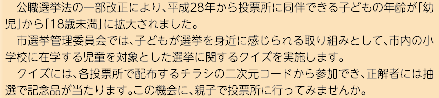 あなたの投じる一票が、日本の明るい未来につながります。満18歳以上の人は、棄権することなく、清く正しい一票を投じましょう。詳しくは、市ウェブサイトを確認してください。