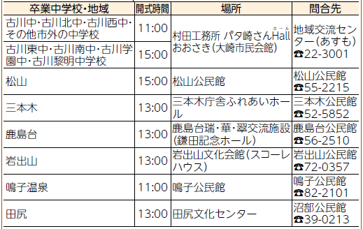 イベント くらしの情報(令和8年大崎市二十歳(はたち)の集いを開催します) 14/34 前の記事 次の記事 発行日 : 2025年11月01日 自治体名 : 宮城県大崎市 広報紙名 : 広報おおさき 2025年11月号 期日:令和8年1月11日(日) 問合せ:生涯学習課総務担当 【電話】23-2213 Tweet シェアする くらしの情報(3) くらしの情報(4)