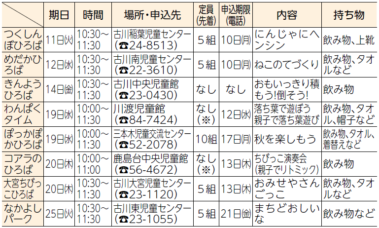 問合せ:大崎広域ほなみ園(児童発達支援センター)