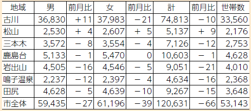 ■10月1日現在の大崎市の人口(単位:人・世帯)