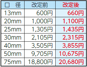 ※このほか、水道加入金も10%の改定となります。