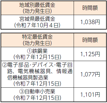 詳しくは、宮城労働局賃金室(【電話】022-299-8841)にお問い合わせください。