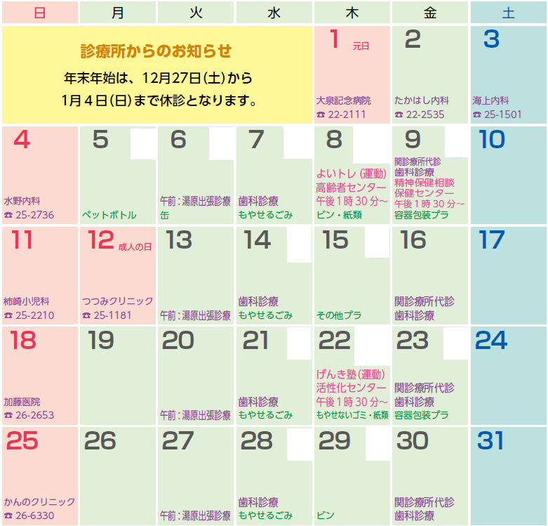 ※休日当番医は、都合により変更になる場合があります。