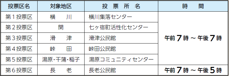 期日前投票:投票日当日に仕事や旅行、冠婚葬祭等の理由により投票所へ行くことができない方は、期日前投票ができます。