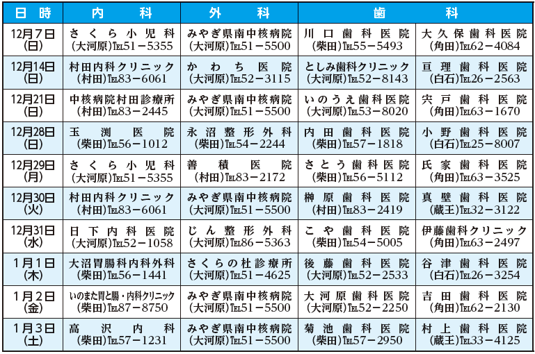 健康 休日急患当番医及び休日歯科診療 7/27 前の記事 次の記事 発行日 : 2025年12月01日 自治体名 : 宮城県川崎町 広報紙名 : 広報かわさき 令和7年12月号 Tweet シェアする 困っていることはありませんか? 合同相談会を開催します 国保川崎病院 12月の診療予定