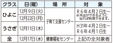 12月17日(水)のわんぱく広場(全クラス)ではお楽しみ会を行います。