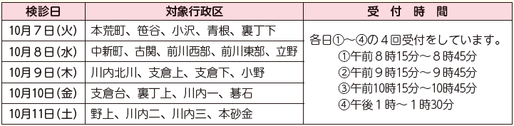 下記の日程で、検診を実施します。2月の意向調査で申し込みをされた方、未回答の方へ9月下旬ごろ受診票が郵送されます。