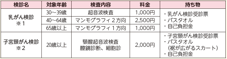 ※2 子宮頸がん検診は毎年受診できます。子宮頸がんと関係の深いHPV検査を併せて受けることも可能です(今までにHPV検査を受けたことのない30歳以上の方が対象です)。